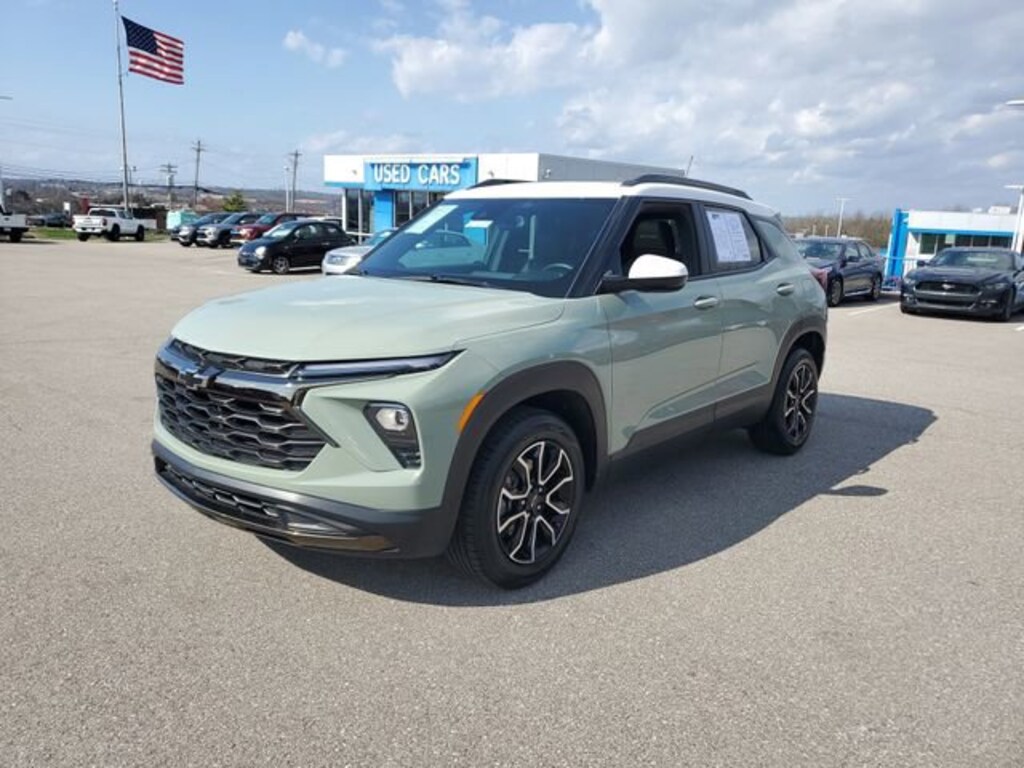 Home of the Lifetime Powertrain Protection! Proudly Serving: Cincinnati, Dayton, Lexington, Louisville, Hamilton, Mason, Sharonville, Beavercreek, Springdale, West Chester, Monroe, Fairfield, Kenwood, Newport, Covington, Fort Mitchell, Fort Thomas, Fort Wright, Independence, Florence, Union, Alexandria, Butler, Falmouth, Dry Ridge, and all of greater Cincinnati, Ohio, Indiana, and Northern Kentucky. 2024 Chevrolet TrailBlazer ACTIV Cacti Green ANDROID AUTO/APPLE CARPLAY, BLUETOOTH, TOUCH TO START, TOUCH SCREEN, HEATED SEATS, BACK UP CAMERA, MOONROOF SUNROOF, ALL WHEEL DRIVE, CLEAN VEHICLE HISTORY...NO ACCIDENTS, ONE OWNER. CARFAX One-Owner. Clean CARFAX. Certified. 26/29 City/Highway MPG
