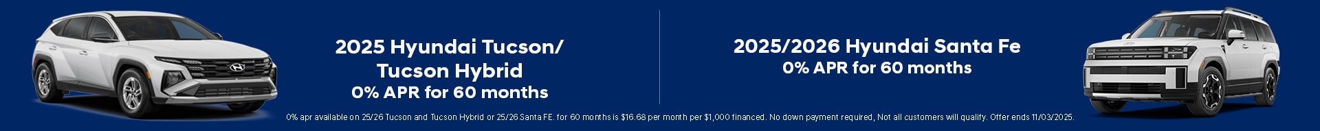 In the event a vehicle is listed at an incorrect price or incorrect features/options due to typographical, photographic, or technical error or error in pricing information received from our suppliers, the dealership shall have the right to refuse or cancel any orders placed for vehicle listed at the incorrect price. Incentives based on retail purchase; special/low APR and lease incentives may vary, see dealer for details. Price does not include Tax, Title, License, Documentation Fee or any dealer added accessories. Pricing may not include market adjustment. Price does include: $1250 - Hyundai HMF Dealer Choice : $1250 discount and 5.99% APR for 24 months. $44.32 per $1000 financed. Available to well qualified buyers who finance through Hyundai Motor Finance. H704. Exp. 11/03/2025