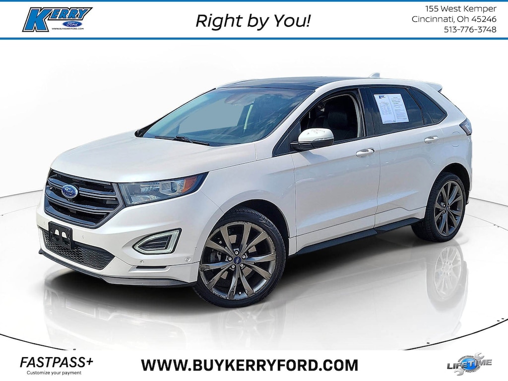 White Platinum Clearcoat Metallic 2017 Ford Edge Sport AWD 6-Speed Automatic 2.7L V6 EcoBoost Edge Sport, 4D Sport Utility, 2.7L V6 EcoBoost, 6-Speed Automatic, AWD, White Platinum Clearcoat Metallic, Ebony Leather, 12 Speakers, Air Conditioning, Automatic temperature control, CD player, Cold Weather Package, Enhanced Active Park Assist System, Equipment Group 401A, Four wheel independent suspension, Front & Rear Floor Liners, Front 180 Degree Camera, Front dual zone A/C, Heated Rear-Seats, Heated Steering Wheel, Heated/Cooled Front Seats, HID Projector-Style Headlamps w/Auto High Beams, Lane-Keeping System, Panoramic Vista Roof, Rain-Sensing Wipers, Rear window defroster, Speed-sensing steering, Technology Package, Traction control.