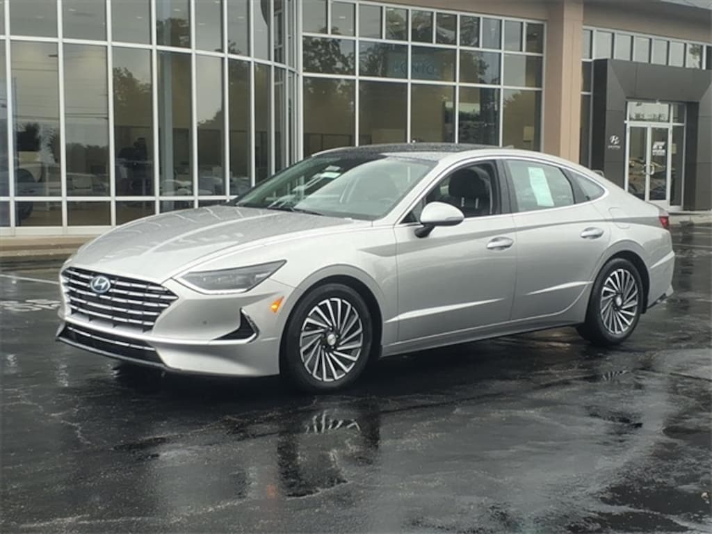 Shimmering Silver 2021 Hyundai Sonata Hybrid Limited FWD 6-Speed Automatic I4 Sunroof, Blind Spot Detection (BSD) With Rear Cross-Traffic Alert (RCTA) And Lane Change Assist, Automatic Emergency Braking (AEB) With Pedestrian Detection, Lane Keep Assist (LKA), Rear Cross-Traffic Alert And Lane Change Assist, *1 OWNER*, *LIFETIME POWERTRAIN WARRANTY*, I4, Apple CarPlay & Android Auto, Heads-Up Display, Heated & Ventilated Front Bucket Seats, Remote keyless entry, Steering wheel mounted audio controls.
