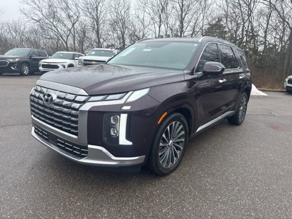 Home of the Lifetime Powertrain Protection! Proudly Serving: Cincinnati, Dayton, Lexington, Louisville, Hamilton, Mason, Sharonville, Beavercreek, Springdale, West Chester, Monroe, Fairfield, Kenwood, Newport, Covington, Fort Mitchell, Fort Thomas, Fort Wright, Independence, Florence, Union, Alexandria, Butler, Falmouth, Dry Ridge, and all of greater Cincinnati, Ohio, Indiana, and Northern Kentucky. 2024 Hyundai Palisade Calligraphy Sierra Burgundy ANDROID AUTO/APPLE CARPLAY, BLUETOOTH, LANE ASSIST, TOUCH TO START, TOUCH SCREEN, HEATED SEATS, BACK UP CAMERA, BLIND SPOT DETECTION SYSTEM, MOONROOF SUNROOF, LEATHER, ALL WHEEL DRIVE, CLEAN VEHICLE HISTORY...NO ACCIDENTS, ONE OWNER. CARFAX One-Owner. Odometer is 20192 miles below market average!Online pricing reflects all advertised specials, coupons, rebates, and discounts. In the event a vehicle is listed at an incorrect price or incorrect features/options due to typographical, photographic, or technical error or error in pricing information received from our suppliers, the dealership shall have the right to refuse or cancel any orders placed for vehicle listed in error.