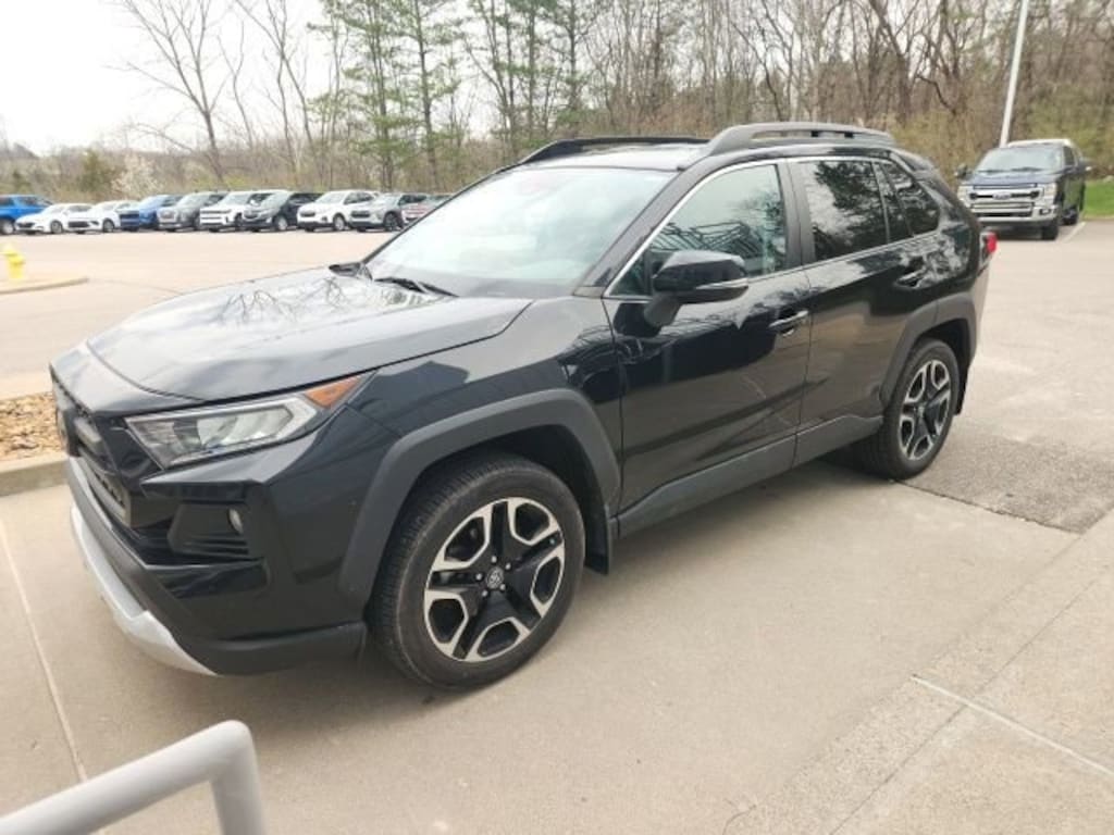 Home of the Lifetime Powertrain Protection! Proudly Serving: Cincinnati, Dayton, Lexington, Louisville, Hamilton, Mason, Sharonville, Beavercreek, Springdale, West Chester, Monroe, Fairfield, Kenwood, Newport, Covington, Fort Mitchell, Fort Thomas, Fort Wright, Independence, Florence, Union, Alexandria, Butler, Falmouth, Dry Ridge, and all of greater Cincinnati, Ohio, Indiana, and Northern Kentucky. 2020 Toyota RAV4 Adventure Midnight Black/Ice Edge Roof TOUCH TO START, HEATED SEATS, BACK UP CAMERA, LEATHER, ALL WHEEL DRIVE, CLEAN VEHICLE HISTORY...NO ACCIDENTS, AWD, Black w/SofTex Seat Trim, 16 Alloy wheels, ABS brakes, Active Cruise Control, Electronic Stability Control, Front dual zone A/C, Heated door mirrors, Illuminated entry, Low tire pressure warning, Remote keyless entry, Traction control. Clean CARFAX. Odometer is 19535 miles below market average!Online pricing reflects all advertised specials, coupons, rebates, and discounts. In the event a vehicle is listed at an incorrect price or incorrect features/options due to typographical, photographic, or technical error or error in pricing information received from our suppliers, the dealership shall have the right to refuse or cancel any orders placed for vehicle listed in error.